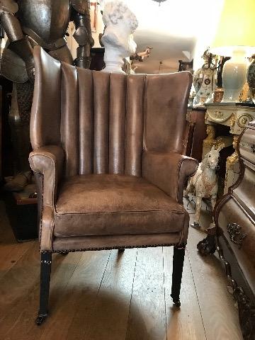 Beautifull taupe leather wingchair In perfect condition